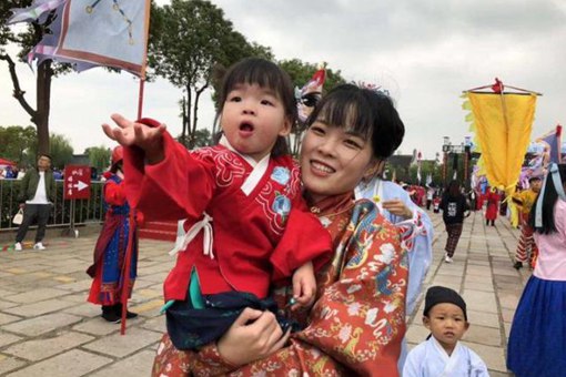 快看,身著晉、唐、宋、元、明、清各朝代傳統服飾的方陣也邁著整齊的步伐緩步而來,肅穆壯觀,汪洋自恣;各朝代歷史人物方陣也隨之一一展現,文人之儒雅、武將之雄風,都令人眼前一亮。 此外,鎧甲方陣、親子方陣,民眾方陣......各種新元素、新創想的朝代嘉年華活動,不僅僅為大家呈現出千年華夏傳統民族服飾之美,更令大家感受到錦繡中華禮儀之邦的獨特韻味。 三歲的陳思景第一次跟著媽媽來參加漢服文化周。思景的媽媽潘女士是福建人,目前在杭州工作。“我從高中開始就非常喜歡漢服,那時候沒有漢服社,沒有同袍,幾個興趣一致的朋友穿著漢服逛街;自從知道西塘有漢服節后,我連續來了好幾年,今年帶著孩子一起,就是希望她也可以像我一樣愛上西塘,愛上漢服文化。” 隨著對漢服的了解,潘女士已經從漢服愛好者“進化”到漢服生活者,正在慢慢努力成為漢服復興者。”