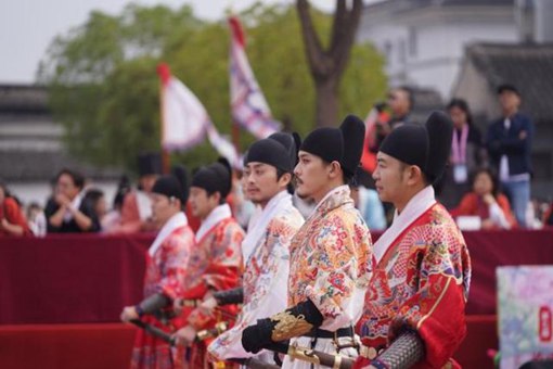 “射禮和漢服的關系就是由表及里,射禮是內核,漢服是動力,兩者缺一不可。”戲稱自己專業“陪跑”漢服周五年的傳統弓箭民間組織江東衛隊隊長周天宸今年已經是第六次參加漢服文化周活動。“傳統射箭一般慣用右手,通常右手拉弦,左手持弓,也就是左手前,右手后。自古以來射箭的時候,都講究‘左袒’,脫下左邊的袖子,便于射箭時候的活動。漢服對人的要求,例如中正平和(漢服的中縫),應對自然(剪裁手法),和傳統射箭是相同的。以漢服、射禮為代表的禮樂衣冠,就是一代代射士所捍衛的華夏文化之精華。” 周天宸告訴本端記者,射禮自周代就有,是周禮樂體系的一部分。孔子云“君子無所爭,必也射乎”。“我認為,射箭在古代是君子六藝,是重要的國防技能,是一個人身體素質、反應能力、學習能力的直觀體現;射禮是禮儀教化的體現,射禮中無論勝者敗者,乃至一箭一步,都必須按照周禮的流程來;射禮是射箭技術的傳承,射禮的射程有70–90米,這和現代奧林匹克運動會反曲弓的70米射程相差不遠,這種距離沒有相當的師承和長時間的練習根本做不到。” 由此可見,射箭(軍事)可以稱之為捍衛漢服文化的一種傳承模式。 除了射禮,無論是大氣華麗的朝代嘉年華、傳統婚禮、莊嚴肅穆的祭祀禮和拜師禮,還是文墨書香的國學四藝和君子六藝,都是中華傳統文化博大精深與獨特韻味的多元呈現,都全方面的展示著漢服的古典韻味以及傳統禮儀,給漢服同袍以及四方慕名而來的游客一場關于漢服文化的饕餮盛宴。