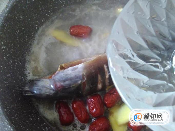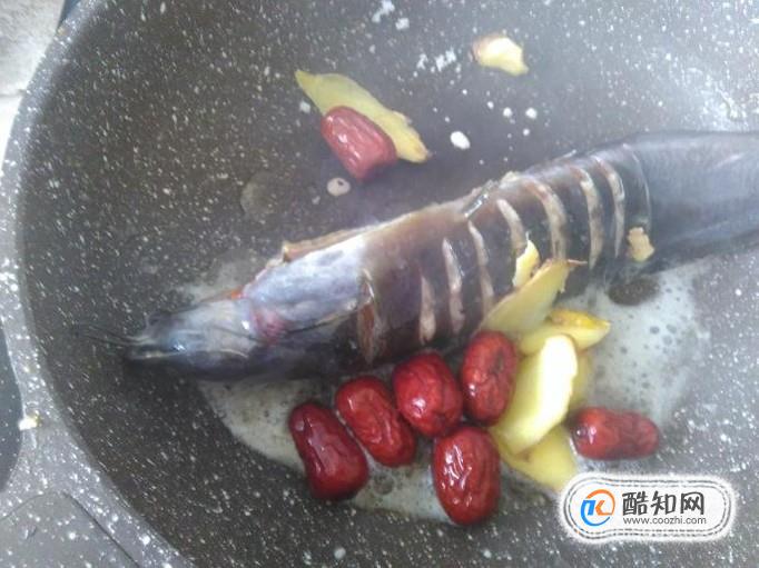 本地塘角魚1條,紅棗20克,姜片、料酒適量。