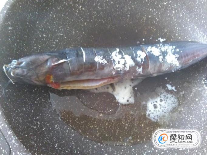 塘角魚內(nèi)臟清出來洗干凈,在魚面打一條條深痕