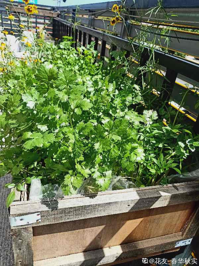五、香菜 香菜的生長速度在小院子的蔬菜里算是比較慢的,10天左右才能看到發芽,但勝在量多,種一輪夠吃好久。 秋天播種香菜的時候,可以選擇一些葉子小的品種,都會比較耐寒,然后把外皮剝掉,在水里浸泡一天的時間,用濕巾或者其它濕布包著一個多星期,這樣生長速度就會更快。