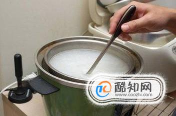 然后打開鍋蓋,將枸杞放入進去,用盛粥的大勺攪拌,讓枸杞完全融入進去,要不斷攪拌,使枸杞也能入味。