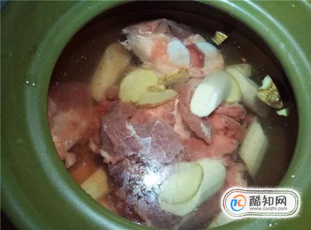 把清洗干凈的筒骨、淮山,和姜片一起放入湯鍋里煮。