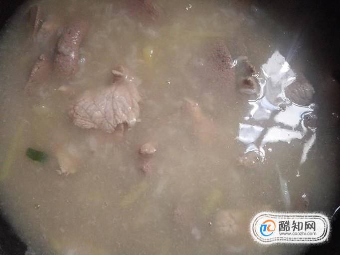 工具/材料豬肝100克、瘦肉100克、大米150克、蔥1把、姜適量、料酒1勺、生抽1勺、鹽適量、油1勺 操作方法