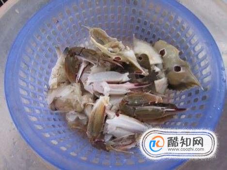 把梭子蟹洗凈后,然后剁成小塊備用,記得把水分瀝干