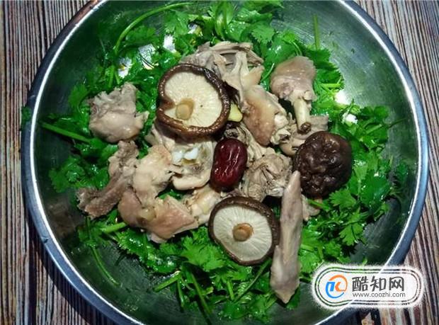 雞肉、蘑菇、紅棗、姜 、香菜、醬油、花生油