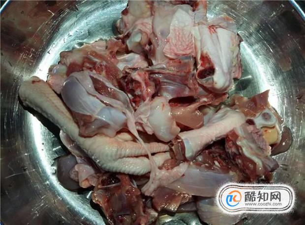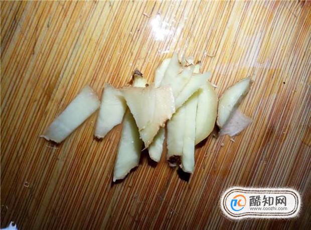 雞肉清洗干凈,瀝干水分備用;姜切片,備用。
