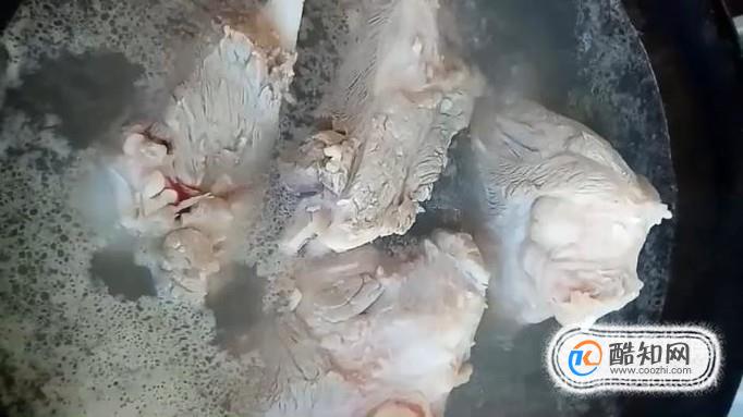 在鍋中放水,冷水時將大骨頭放入水中焯水,煮出豬骨頭的血沫后,撈出備用。