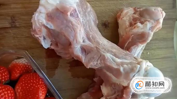 在超市購買兩根豬大骨,選擇骨頭表面有肉的,顏色鮮亮的骨頭,沖洗干凈。