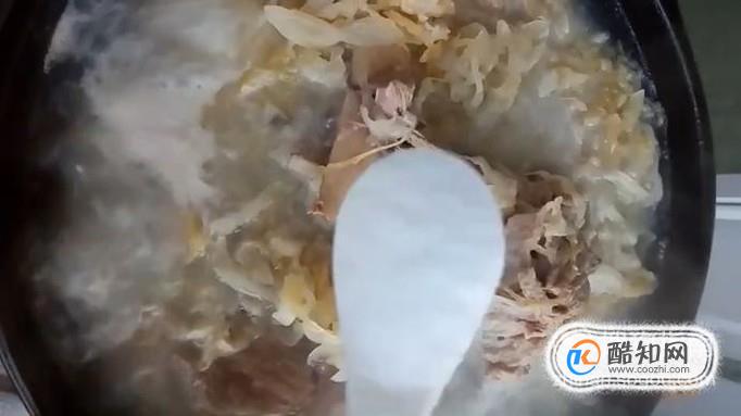 燉好后,向鍋中加一勺鹽和半勺雞精,攪拌均勻。