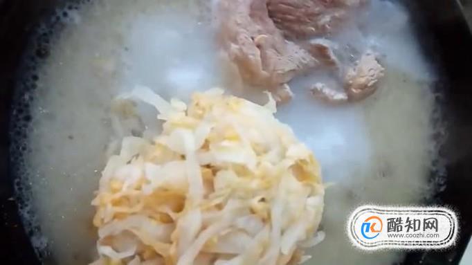 煮好后,取500g酸菜,將酸菜放入沙鍋中,小火燉20分鐘。