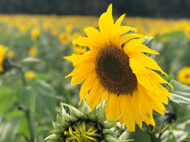 2.向日葵 向日葵是一種非常陽光的花卉,它們的花朵大而鮮艷,通常呈黃色或橙色,花盤中央的花粉柱和雄蕊非常明顯,形成了與眾不同的花型。向日葵的花期較長,可以持續到秋季,常常被用來裝飾路邊花壇。