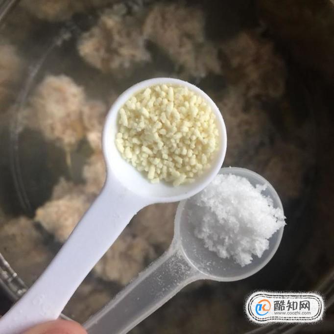 接著往鍋中加入一勺的鹽巴和一勺的味精。