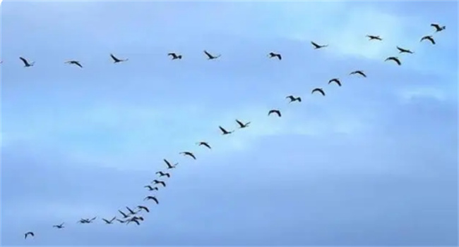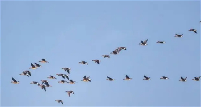 大雁飛行為什么排成人字形 大雁的生活是比較有規律的,每一群中都會有一只大雁成為領頭雁。飛行的速度達到每個小時70公里到90公里,無所畏懼,直接穿過風穿過云,有一些體格強健的大雁就會排在隊伍的前面。每兩只大雁之間的距離都是相等的,這種排列的方式能夠有效節省70%的體力。前面的大雁在飛行的過程中就會產生一種氣流,后面的大雁可以有效利用氣流而節省體力。