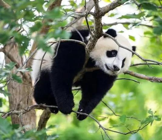 熊貓的行為特點: 大熊貓最可愛的特點是它那胖嘟嘟的身體和他那內八字慢吞吞的行走方式。這是因為它們生活的環境里面,有充足的食物,沒有天敵,沒必要行動很快。 但是,正是它這種慢吞吞的動作使它能夠保存能量,以適應低能量的食物。它們有時候也會爬樹偵察情況,逃避入侵者,或是打盹。