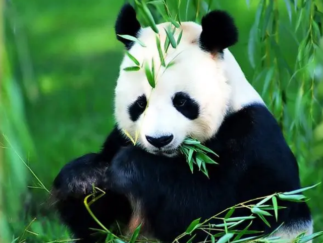 熊貓的食物: 大熊貓的食性是其最為奇特和有趣的習性之一,因為它幾乎完全靠吃竹子為生,在野外自然采食的50多種植物中,竹類就占一半以上。