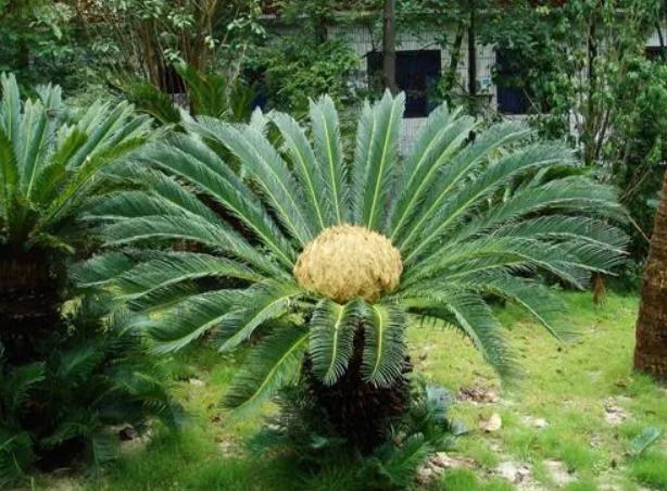 鐵樹的介紹: 蘇鐵俗稱“鐵樹”,一說是因其木質(zhì)密度大,入水即沉,沉重如鐵而得名;另一說因其生長需要大量鐵元素,故而名之。 蘇鐵雌雄異株,花形各異,雄花長橢圓形,挺立于青綠的羽葉之中,黃褐色;雌花扁圓形,淺黃色,緊貼于莖頂。花期6-8月。