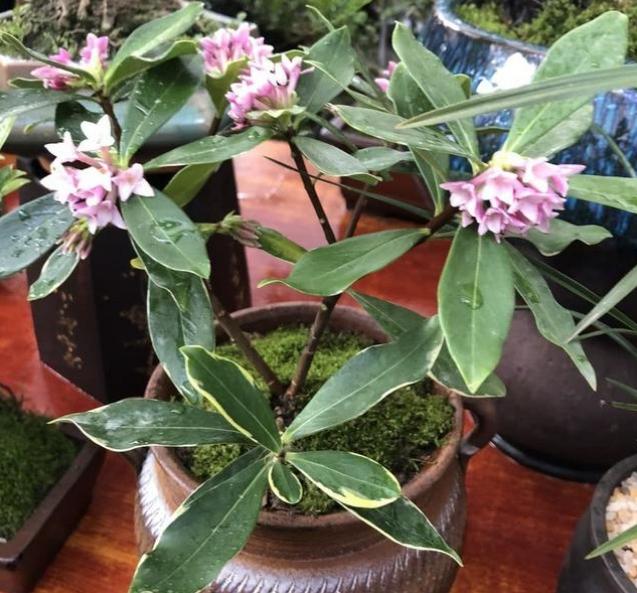 金邊瑞香的介紹: 金邊瑞香是我國傳統名花,也是世界名花。在近代園藝史上,它與長春和尚君子蘭、日本五針松一同被推崇為園藝三寶。 瑞香又叫蓬來花、千里香,屬瑞香科常綠灌木,原產我國,以芳香而聞名,其變種金邊瑞香,是瑞香中的佳品。故有“牡丹花國色天香,瑞香花金邊最良”之說。