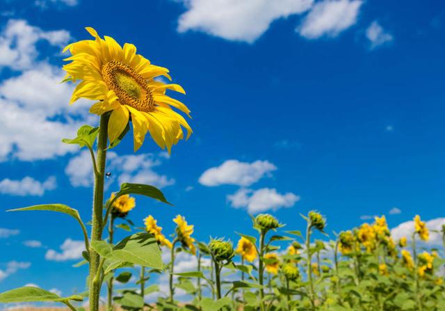 向日葵的生長環境: 向日葵對土壤要求較低,在各類土壤上均能生長,從肥沃土壤到旱地、瘠薄、鹽堿地均可種植,不僅具有較強的耐鹽堿能力,而且還兼有吸鹽性能。 向日葵是耗水較多的作物,植株高大,葉多而密,但因其生長發育多與當地雨熱同步,水分供求矛盾不突出,不同生育階段對水分的要求差異很大。