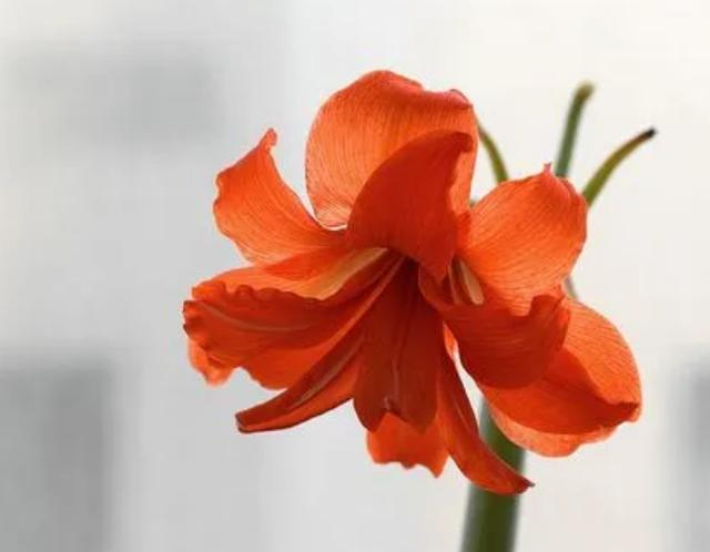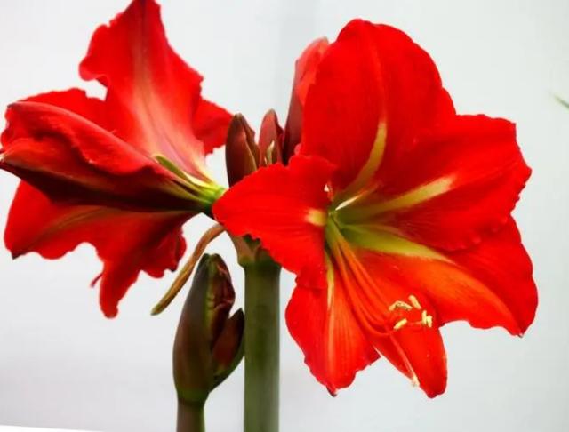 朱頂紅的介紹: 朱頂紅,石蒜科屬多年生草本植物,紅色,略帶紫色;花絲紅色,花藥線狀長圓形;蒴果球形;花期夏季。 朱頂紅開花謝去后,要及時剪掉花梗。因為花后這一階段主要是養鱗莖球,使其充分吸收養分,讓鱗莖增大和產生新的鱗莖。