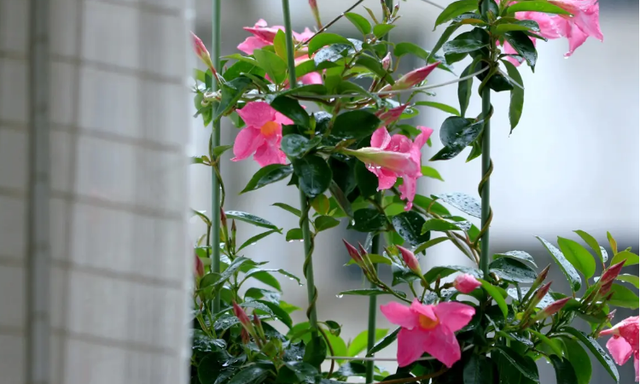 飄香藤 飄香藤是夾竹桃科,雙腺藤屬多年生常綠藤本植物。葉全緣對生,葉片長卵圓形,革質,葉面有皺摺,葉色富有光澤,花腋生,花冠漏斗形,花為紅色、桃紅色、粉紅色等。初春到深秋幾乎全年花開。 生長環境