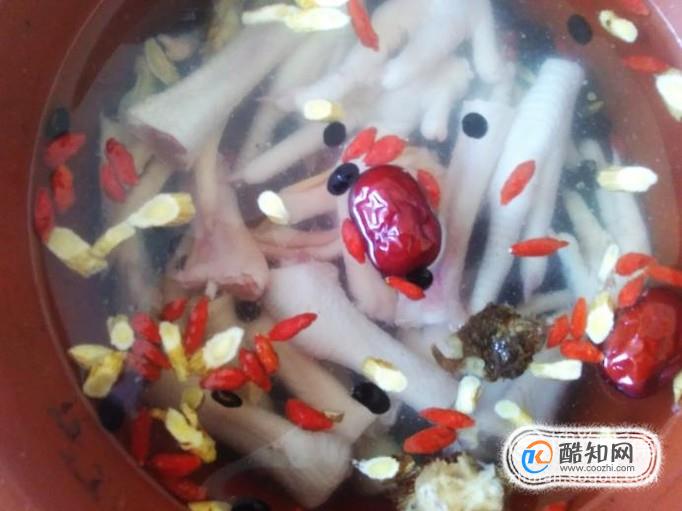 雞腳含有豐富的鈣質及膠原蛋白,有補筋骨和美容的功效,黑豆含較豐富的蛋白質,具有補血、烏發的作用,兩者搭配加滋補藥材燉湯,做出來的湯既好喝又滋補,下面分享它的做法給大家看看。 工具/材料雞腳300克,黑豆150克,紅棗、枸杞、當歸、黃芪,黃酒適量。 操作方法