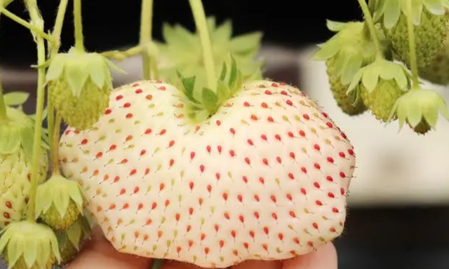 白草莓是組培苗變異株選育而成的草莓新品種。 白草莓的品種十分繁多,但是像我們一般常見的品種有天使2號、天使3號、天使4號、天使7號、天使8號、雪兔、白雪公主、白雪公主2、白雪小町、初戀馨香,還有白寶石、美白姬、桃薰、阿蘇小雪等品種。 白草莓 白草莓是薔薇科草莓屬植物,果實前期12月~3月為白色或淡粉色,4月以后隨著溫度升高和光線增強會轉為粉色,果肉為純白色或淡黃色。口感香甜,入口即化,果皮較薄,充分成熟果肉為淡黃色,吃起來有黃桃的味道,可溶性固形物14%以上,該品種表現生長旺盛,果大品質優,豐產性好,抗白粉病能力較強,是一個理想的鮮食型的優良品種。