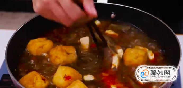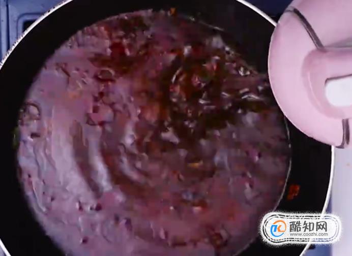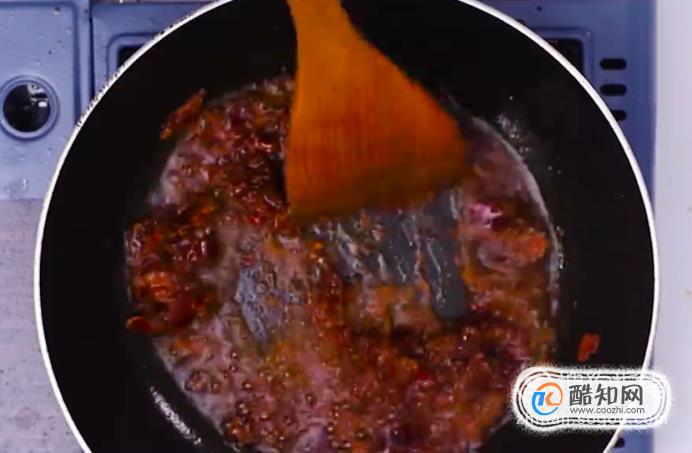 起鍋把油燒熱,加入豆瓣醬炒出紅油。