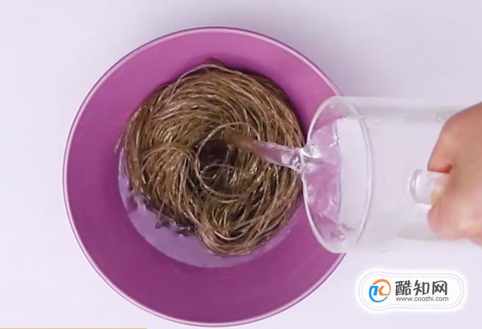 粉絲泡軟后,用剪刀把粉絲剪斷。