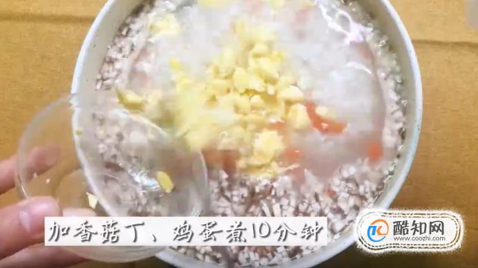 30分鐘后,再加入香菇丁和雞蛋,一起再煮10分鐘。