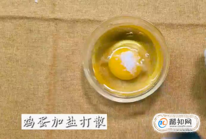 打一個雞蛋到碗里,加適量鹽,用筷子將其打散,混合均勻。