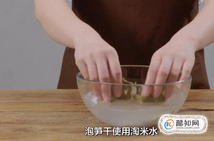 • 筍干使用前先泡發(fā),泡筍干使用淘米水浸泡2個小時候洗凈待用。