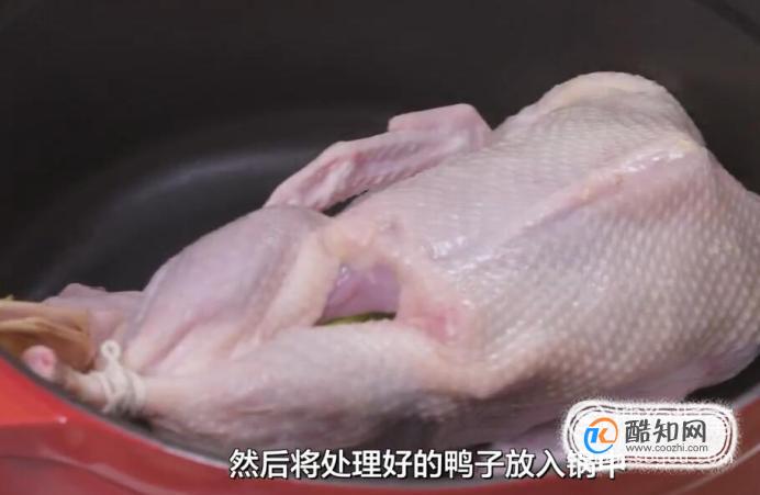 • 然后將處理好的鴨子放入鍋中,加水至淹沒鴨身。