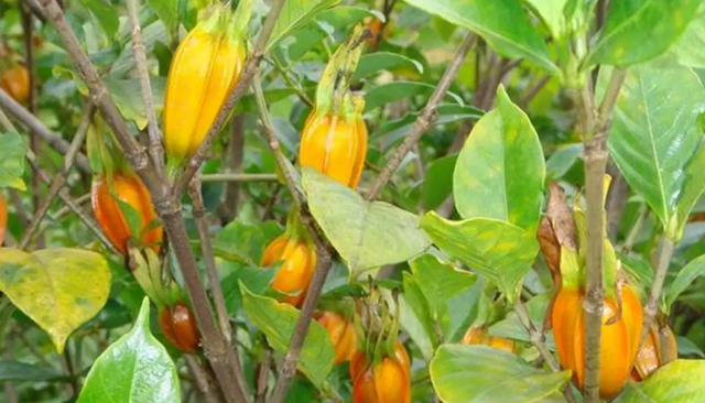 黃梔子 黃梔子隸屬于茜草科、梔子族。喬木,高7-10米,常有膠質狀分泌物。生于海拔700-1600米處的山坡、村邊或溪邊林中。產于云南瀾滄、勐海、景洪、勐臘,國外分布于泰國和老撾。
