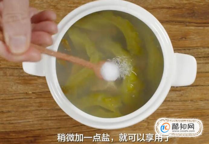 放入苦瓜后,繼續燉一個半小時,就可以關火了。稍微加一點鹽,就可以享用了。