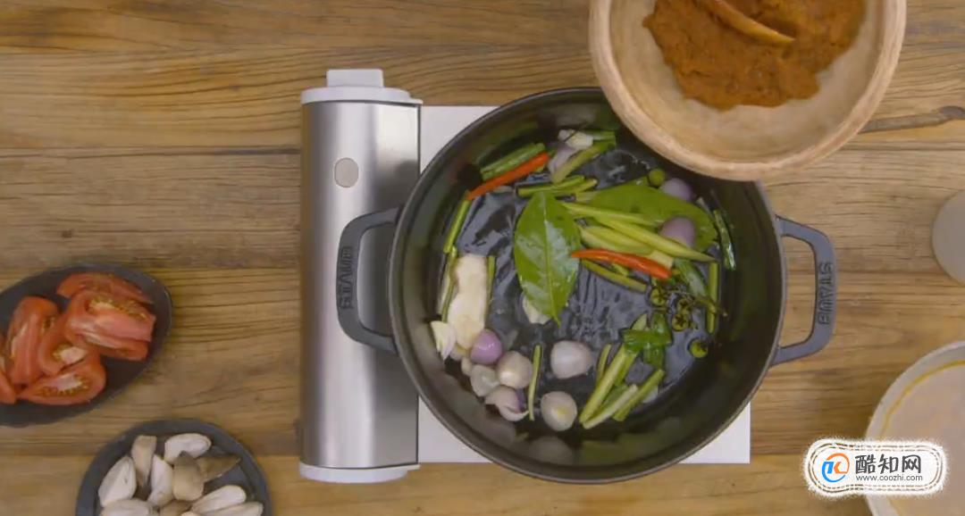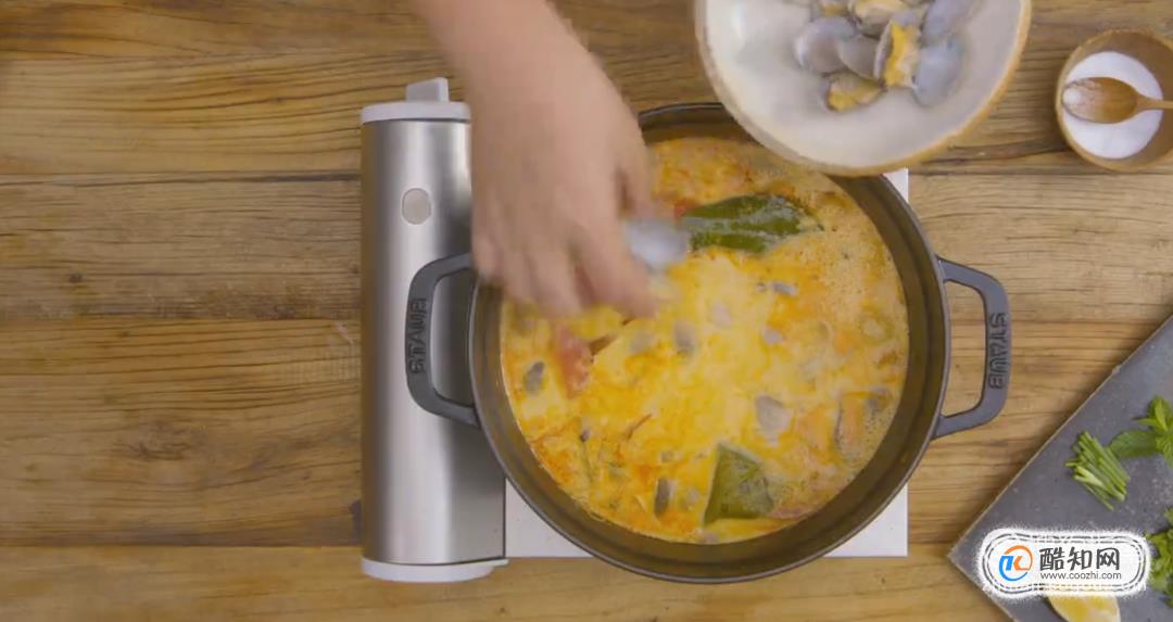工具/材料香茅草3根 青檸皮2條 小洋蔥6個 南姜2個 小米辣3個 大蒜3顆 香蔥2根 基圍蝦8只 新鮮花蛤8只 幼茄8個 草菇5個 青檸2個 西紅柿2個 魚露,辣椒粉,紅咖喱醬,蝦醬,羅望子醬,橄欖油,鹽,白糖,大芫荽葉,薄荷葉,羅勒葉,檸檬葉,香蔥,香菜,椰漿,橄欖油適量 操作方法