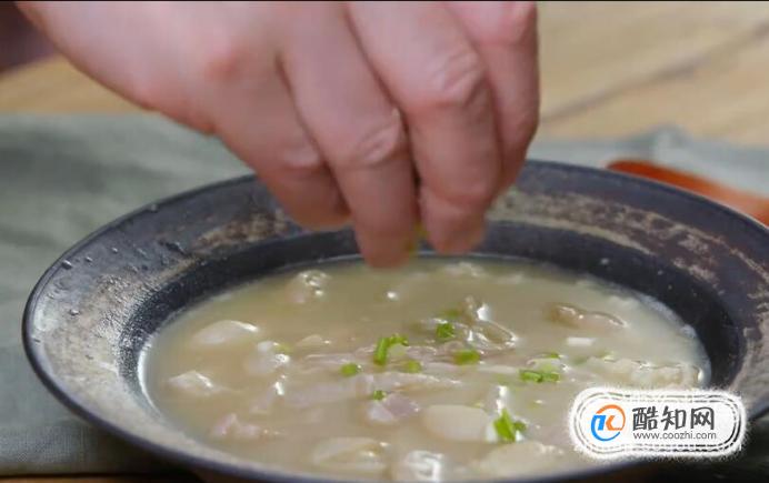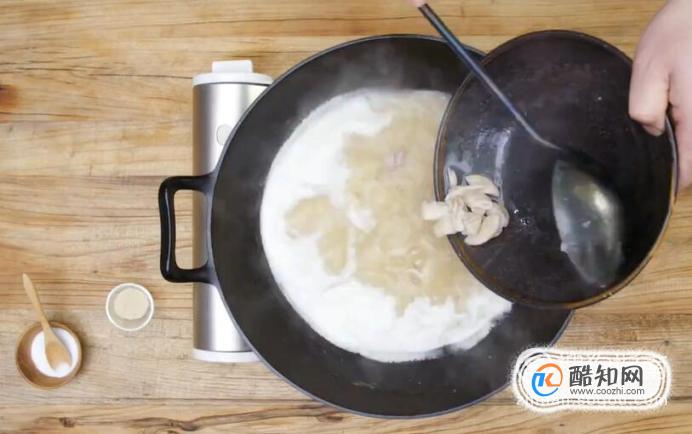 等湯汁再次沸騰之后,加鹽、胡椒粉調味,關火。