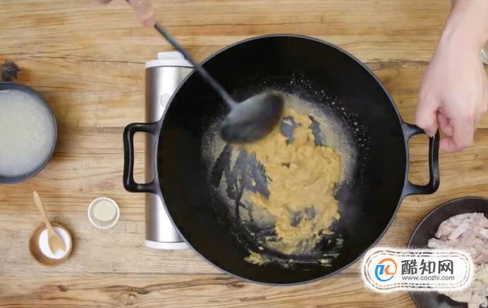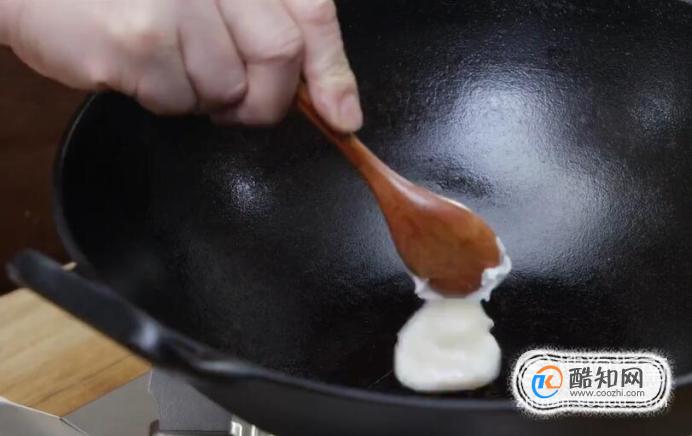 油化開后,放姜片煸香。再倒入耙豌豆翻炒出香。(www.wS46.com)