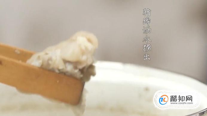 鍋中加水,放入豬蹄和姜片,大火煮沸。