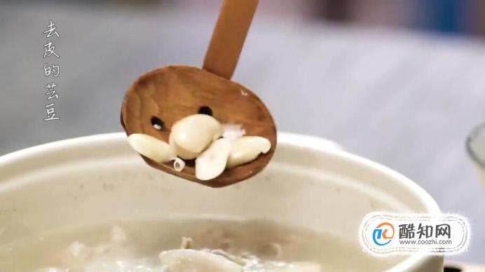 一小時后,在豬蹄湯中加入泡過水去皮的蕓豆和藕塊。