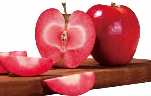 紅心蘋果是紅心之愛,也叫作番茄蘋果。 紅心之愛的果實很像是番茄,果實呈球形,直徑約3-5厘米左右,果皮、果肉、果核都是紅色的,果實切后不變色。 紅心蘋果的果肉細密硬脆,汁水豐富,有濃郁的香味,口感很好。紅心蘋果由瑞士水果種植家馬庫斯科波特培育而成,后來傳入我國,曾經在新疆廣泛栽培。