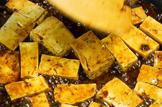 5、最后倒入水淀粉燒幾分鐘,香噴噴的紅燒豆腐就出鍋了。 |