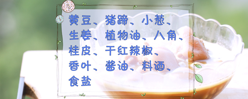 準備食材:黃豆、豬蹄、小蔥、生姜、植物油、八角、桂皮、干紅辣椒、香葉、醬油、料酒、食鹽、冰糖。