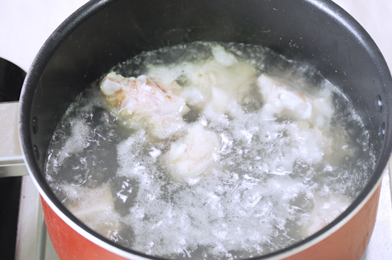 2、鍋內倒入涼水,放入豬蹄焯水三分鐘,撈出用涼水過一遍,瀝干水分。