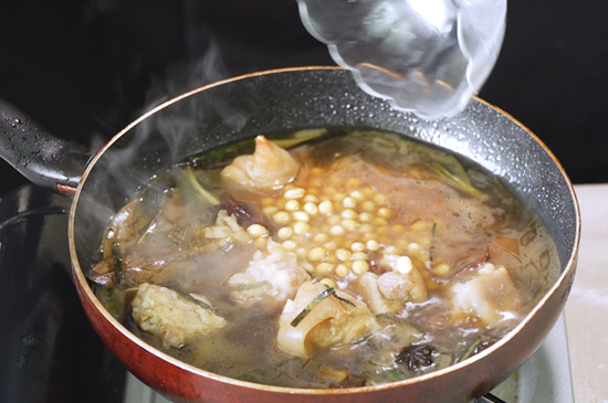 5、加入適量水,蓋上蓋子小火燉40分鐘,倒入適量鹽和提前泡好的黃豆繼續燉40分鐘,美味的燉豬蹄就做好了。 |