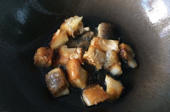 將鍋清洗干凈,開火把水分蒸干,然后在鍋中加入油,開火將油燒熱。將瀝干的魚塊放入鍋中,小火煎至兩面金黃。 步驟3