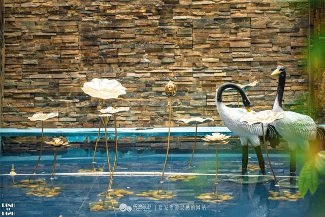 一層的中庭有一個(gè)造型優(yōu)美的小花園,不大的水池中,放置了荷花和白鶴擺設(shè),精湛的手工藝塑造出的白鶴與荷花栩栩如生,構(gòu)成了一幅“蓮葉映玉泉,鶴戲蓮葉間”的立體唯美畫卷,讓人看著都覺(jué)得心情愉悅起來(lái)。