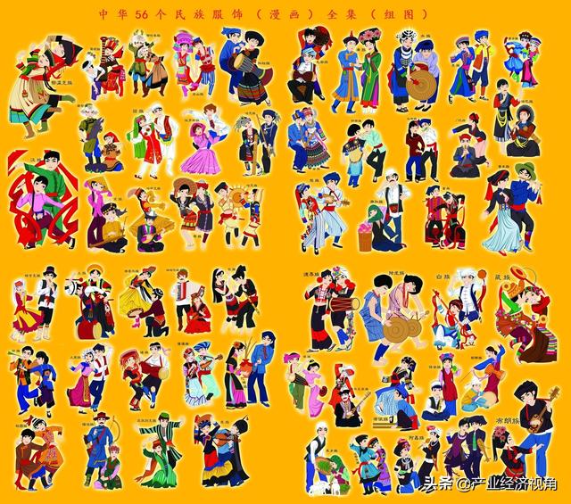 56個民族服飾漫畫 來自網絡 從自治縣來看,大多數都是一個民族形成一個自治縣,另外有由2個、3個或4個民族共同形成的自治縣,其中3個民族構成的自治縣有5個,分別是貴州省威寧彝族回族苗族自治縣,云南元江哈尼族彝族傣族自治縣、云南滇沅彝族哈尼族拉祜族自治縣、云南孟連傣族拉祜族佤族自治縣、云南金平苗族瑤族傣族自治縣,甘肅積石山保安族東鄉族撒拉族自治縣;全國只有1個由4個民族構成的自治縣,即云南臨滄市雙江拉祜族佤族布朗族傣族自治縣。 , |