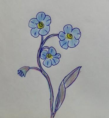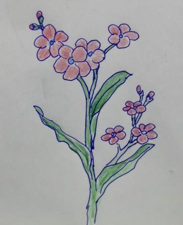 最近看到勿忘我的花朵,特別漂亮,于是畫了幾朵。