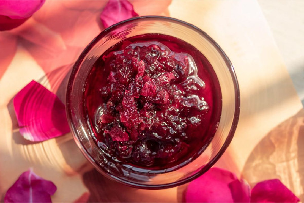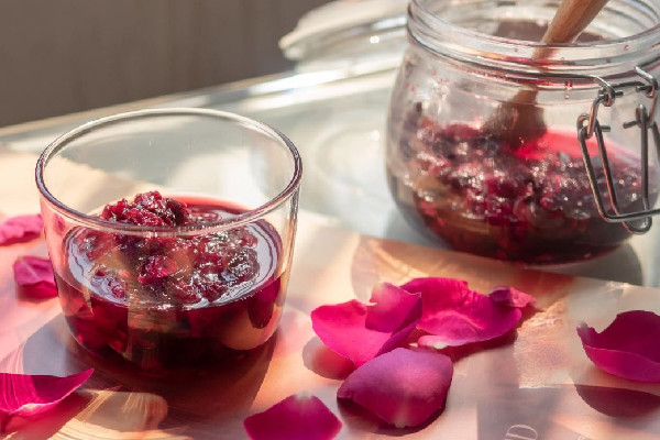 玫瑰花醬是將新鮮的玫瑰花瓣加糖制成的果醬,具有美容養顏、潤腸通便、緩解神經緊張等功效。其中,玫瑰花含有豐富的維生素C和類黃酮等營養成分,能夠抗氧化、增強免疫力、促進血液循環。 玫瑰花醬的功效和作用玫瑰醬有疏肝醒脾功效,可以促進血液的循環與身體的新陳代謝,有提神醒腦的功效,它富有營養,柔潤肌膚養容顏抗衰老的作用,對于整體精神氣色和膚質的提高,都有很好的幫助。而且還可以化解腹部瘀血疼痛,治療胃炎治療婦科病,還舒緩痛經,而且玫瑰花醬屬溫性食物,也可以降火促進血液循環與新陳代謝。